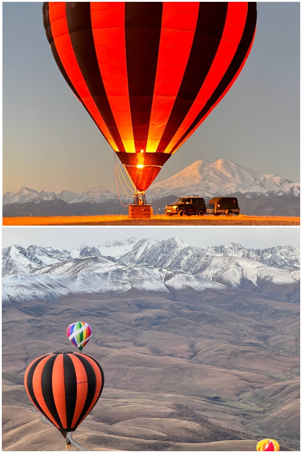 А вот когда всё по погоде — начинается чистое волшебство. Без тряски, без стресса. Просто вы, шар и величественный Кавказский хребет.